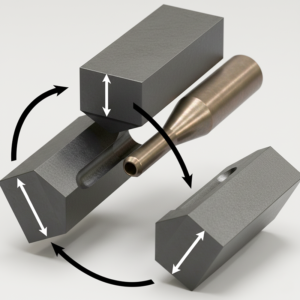 스웨이징은 부피를 성형하는 소성가공중의 단조의 일종입니다. 다른식으로 표현하면 반지름방향단조라고 생각하면 됩니다. 아래의 그림처럼 봉이나 파이프형태의 재료를 반지름 방향으로 다이를 왕복운동을 하여 지름을 줄이는 공정이 스웨이징입니다. 파이프 내부의 맨드릴의 형상에 따라 내부의 모양은 빈원형태가 아니라 원하는 모양으로도 만들수 있습니다. 스웨이징은 샤프트와 같은 재료의 부피를 성형하는 소성가공의 일종으로 반지름 방향으로 실시하는 단조입니다. 샤프트 또는 파이프 형태의 재료를 반지름 방향으로 왕복하여 지름을 줄일 수 있으며 원하는 모양으로 만들 수 있습니다.